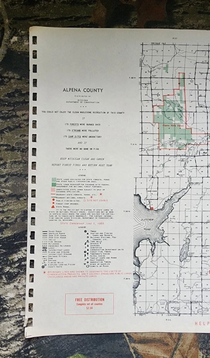 Vtg 1955 Alpena County Michigan Dept Conservation Plat Maps 11″ X