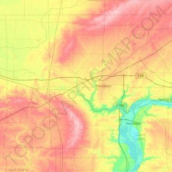 Mapa topográfico Bureau County, altitud, relieve