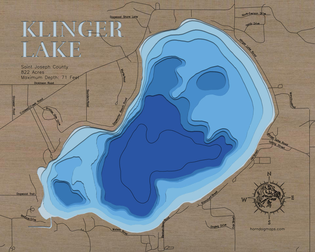 3d Lake Map of Klinger Lake in Saint Joseph County, MI – Horn Dog Maps