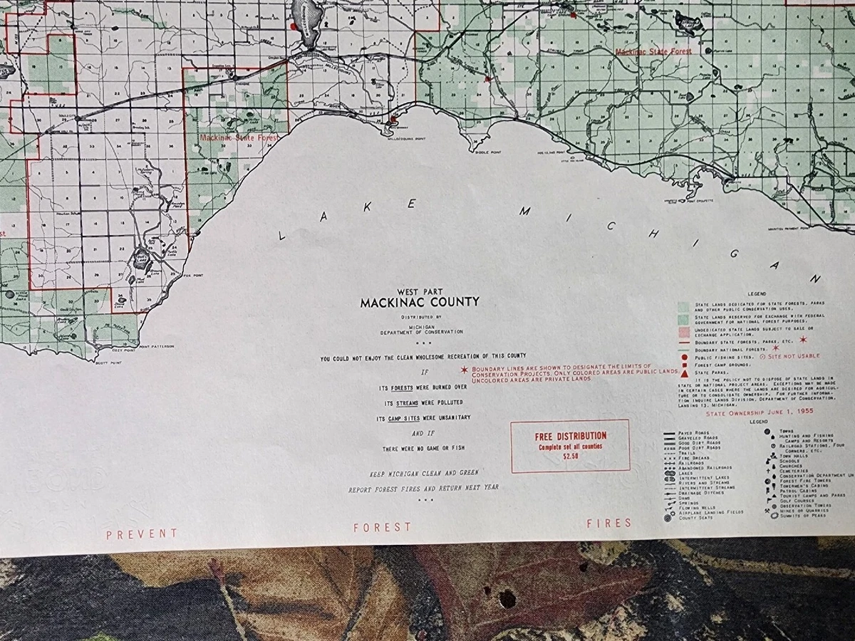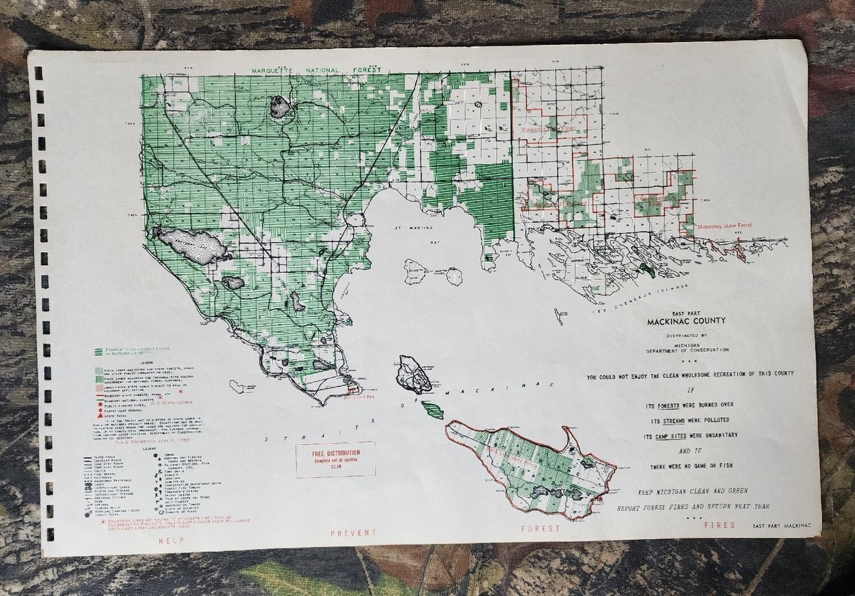 Vtg 1955 West Part Mackinac County Michigan Dept Conservation Plat