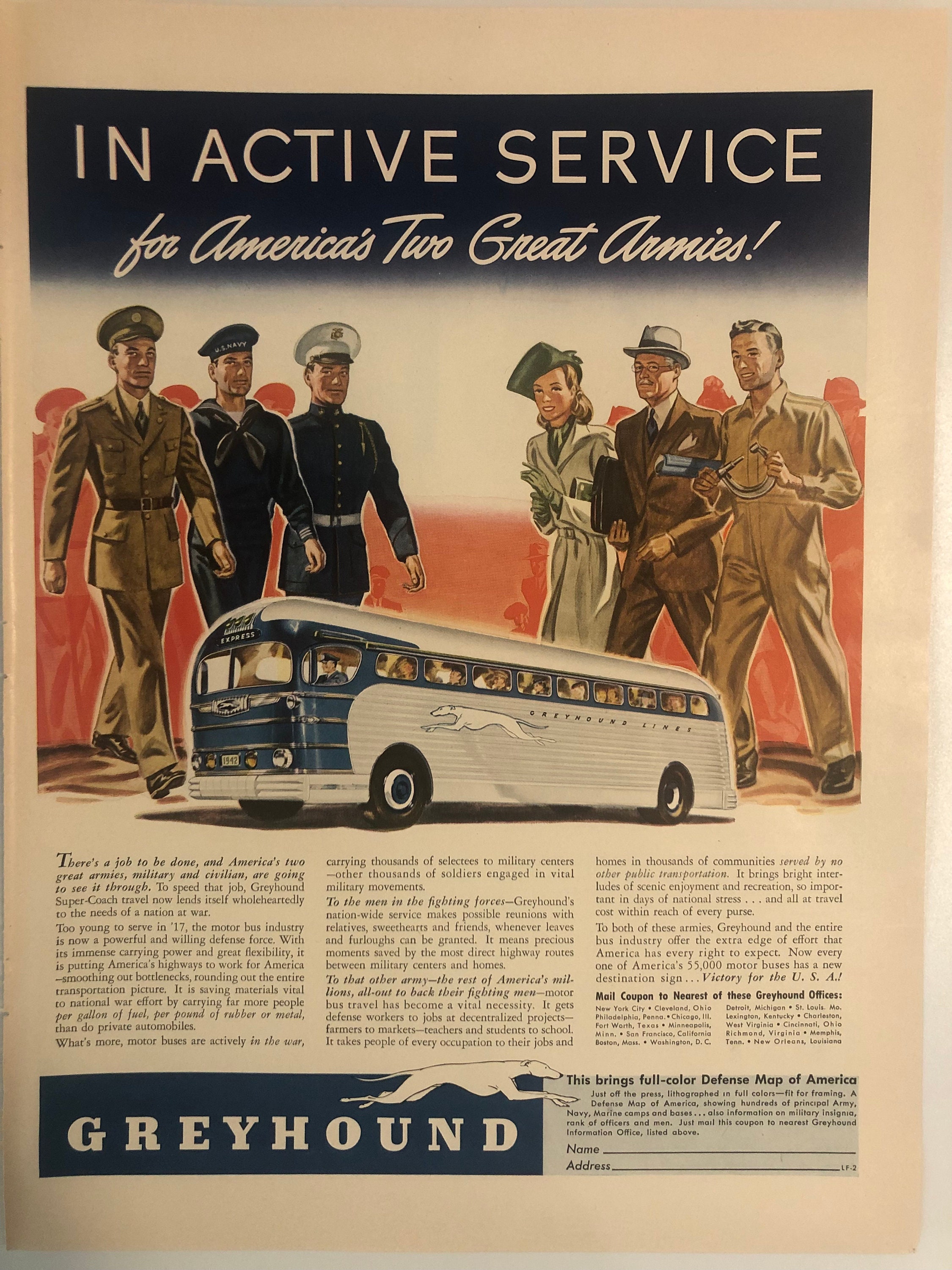 Greyhound Bus Advertisement 1940s Man Cave Decor Home Decor