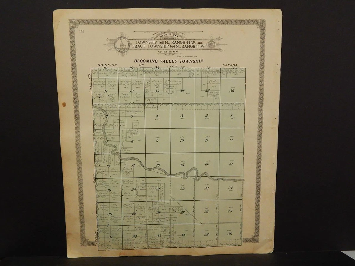 Minnesota Roseau County Map Blooming Valley Township 1913 Dbl Side