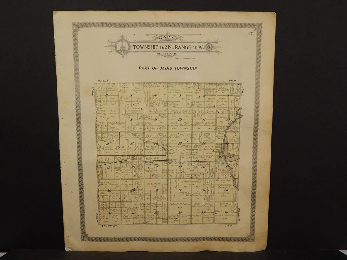 Minnesota Roseau County Map Jadis Township 1913 Dbl Side J13#40 | eBay