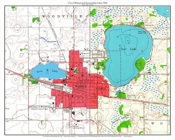 Waseca 1966 Loon Lake Clear Lake Map Reprint Old Topographic USGS