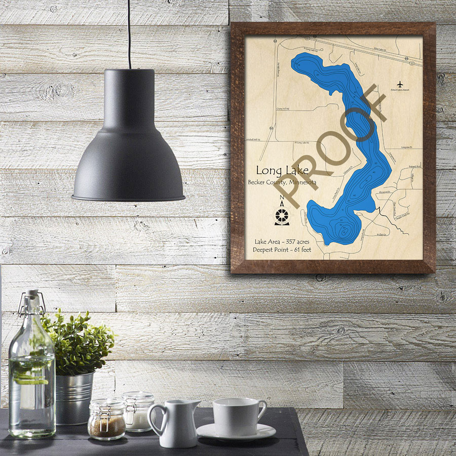 Long Lake 3D Wood Map, Becker County Minnesota, Nautical Wood Chart